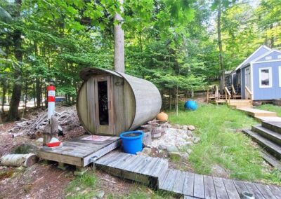 Nestled on the serene shores of Bigwin Island with picturesque views of Lake of Bays and year-round sunsets, this charming rustic cottage offers an idyllic retreat from the hustle and bustle of everyday life. Just a short boat ride away from Port Cunnington Marina, its northern exposure ensures breathtaking sunrises and tranquil evenings. Boasting 100 feet of water frontage, this cozy retreat features three bedrooms and one bathroom, providing comfortable accommodations for family and guests alike. Affordability meets luxury with amenities such as an outdoor fireplace, sunroom for all day enjoyment, and an outdoor sauna for relaxation. For those who love to entertain, the cottage offers a unique blend of outdoor features including an outdoor shower and a tiki bar perfect for hosting gatherings and enjoying the outdoors in style. Additionally, four sheds provide ample storage for all your recreational gear and equipment. Whether you're seeking a peaceful getaway or a place to entertain friends and family, this cottage on Bigwin Island promises a perfect blend of comfort, charm, and waterfront allure.