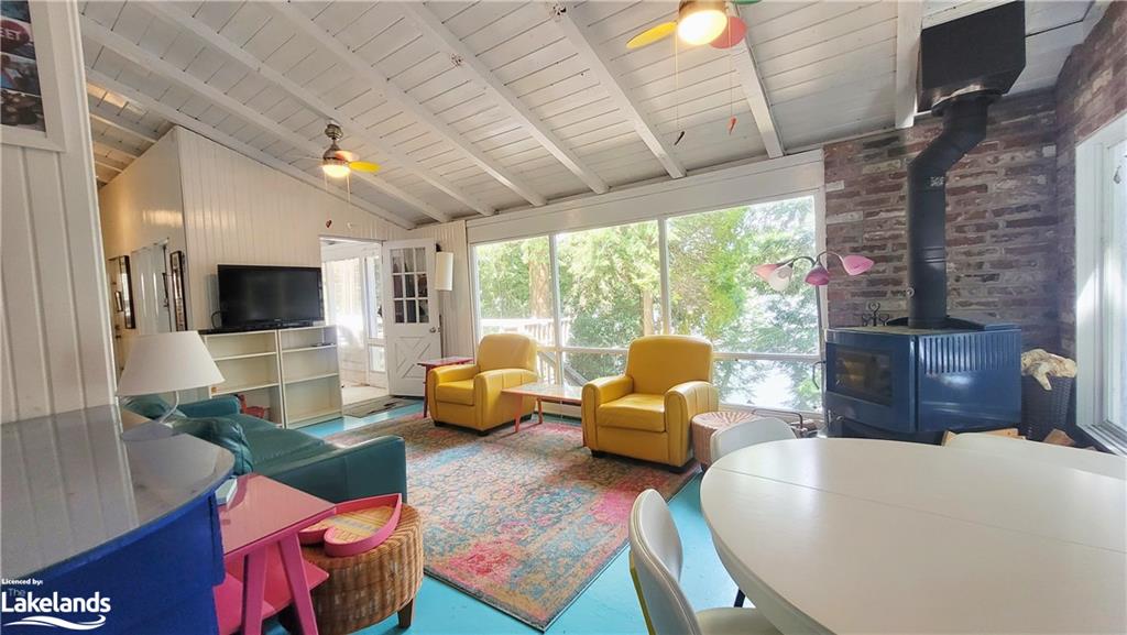 Nestled on the serene shores of Bigwin Island with picturesque views of Lake of Bays and year-round sunsets, this charming rustic cottage offers an idyllic retreat from the hustle and bustle of everyday life. Just a short boat ride away from Port Cunnington Marina, its northern exposure ensures breathtaking sunrises and tranquil evenings. Boasting 100 feet of water frontage, this cozy retreat features three bedrooms and one bathroom, providing comfortable accommodations for family and guests alike. Affordability meets luxury with amenities such as an outdoor fireplace, sunroom for all day enjoyment, and an outdoor sauna for relaxation. For those who love to entertain, the cottage offers a unique blend of outdoor features including an outdoor shower and a tiki bar perfect for hosting gatherings and enjoying the outdoors in style. Additionally, four sheds provide ample storage for all your recreational gear and equipment. Whether you're seeking a peaceful getaway or a place to entertain friends and family, this cottage on Bigwin Island promises a perfect blend of comfort, charm, and waterfront allure.